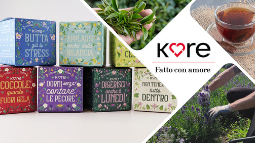 NOVITA' Le tisane KORE sono funzionali, regolarizzanti, del benessere e rilassanti, e sono realizzate con miscele naturali selezionate per offrirti energia, forma fisica e relax, nel pieno rispetto dell’ambiente e delle persone.