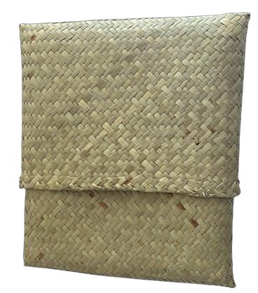 Pochette in fibra naturale con bagnodoccia e crema corpo a base di olio d’oliva della Palestina.
