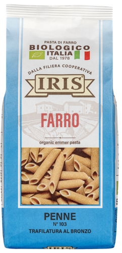 Le penne farro IRIS, realizzate con farro semi-integrale della varietà Triticum, sono trafilate al bronzo per trattenere meglio i sughi. Digeribili e versatili, sono ideali con ogni tipo di condimento o semplicemente con olio extravergine di oliva e formaggio grattugiato.