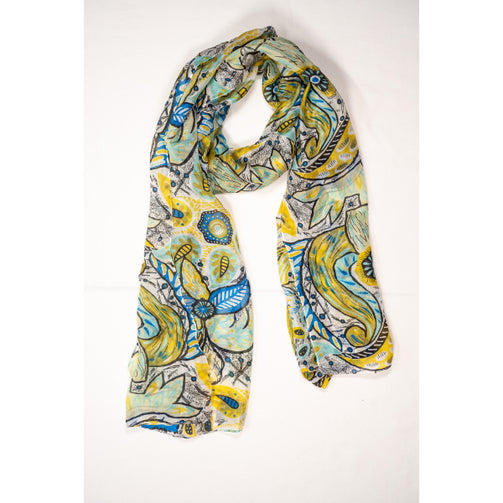 STOLA SETA STAMPATA VANESSA GIALLO AZZURRO HUBEQ8074818 Equomercato